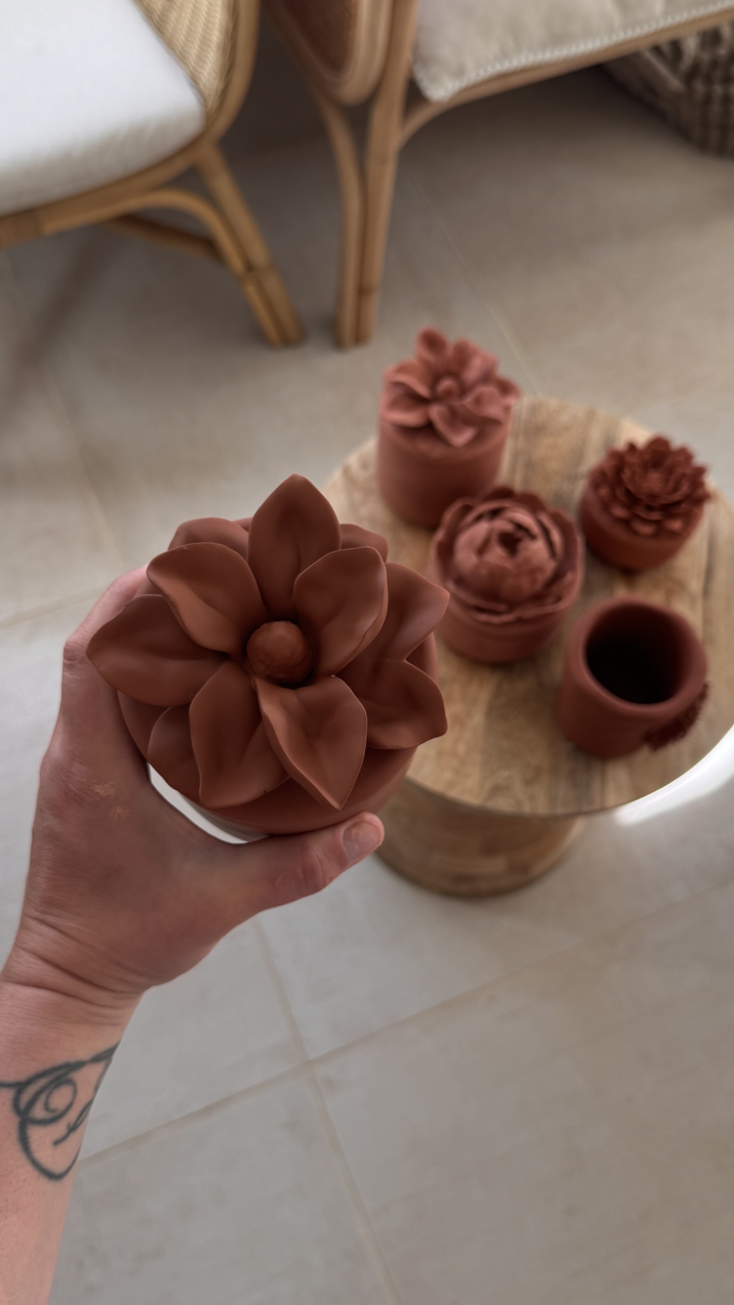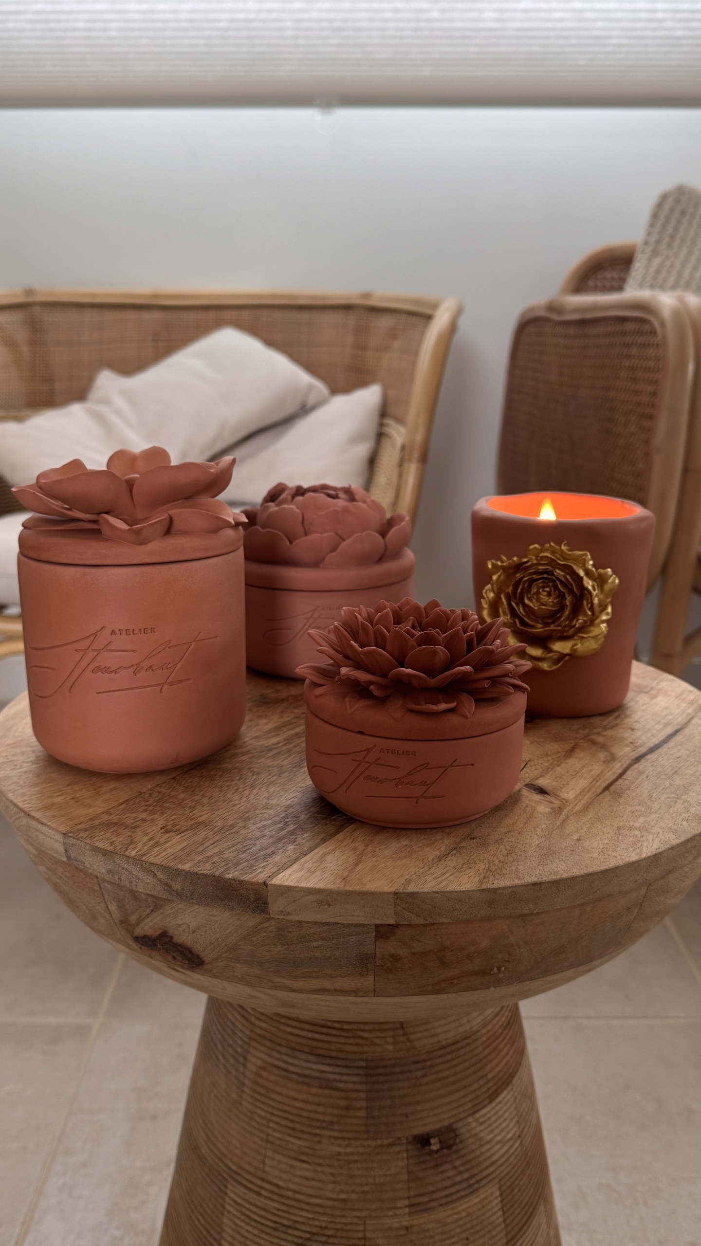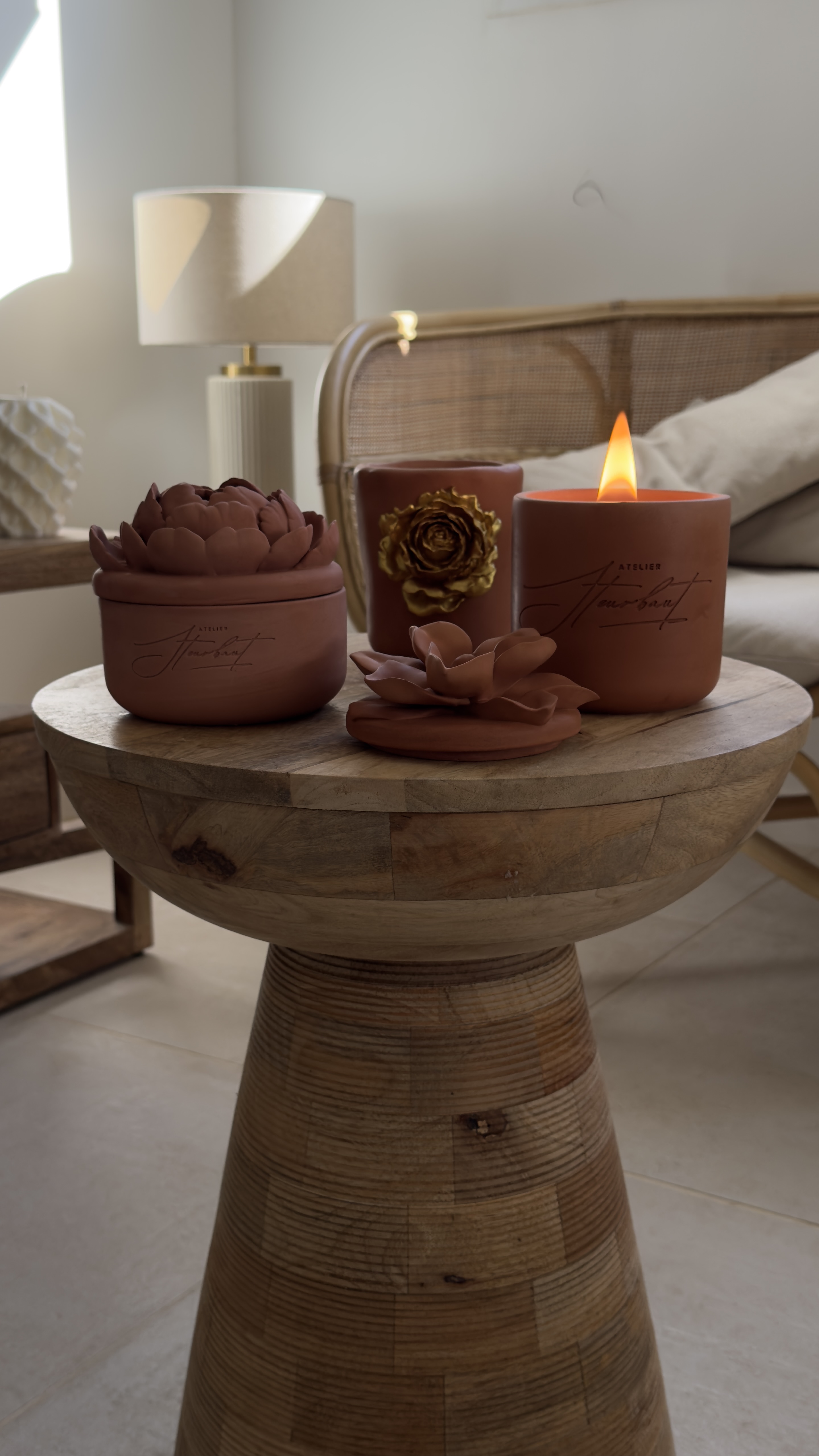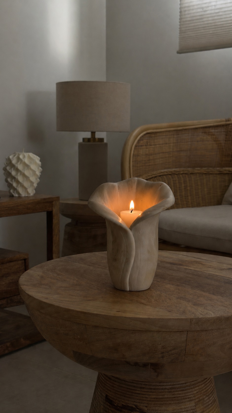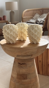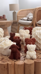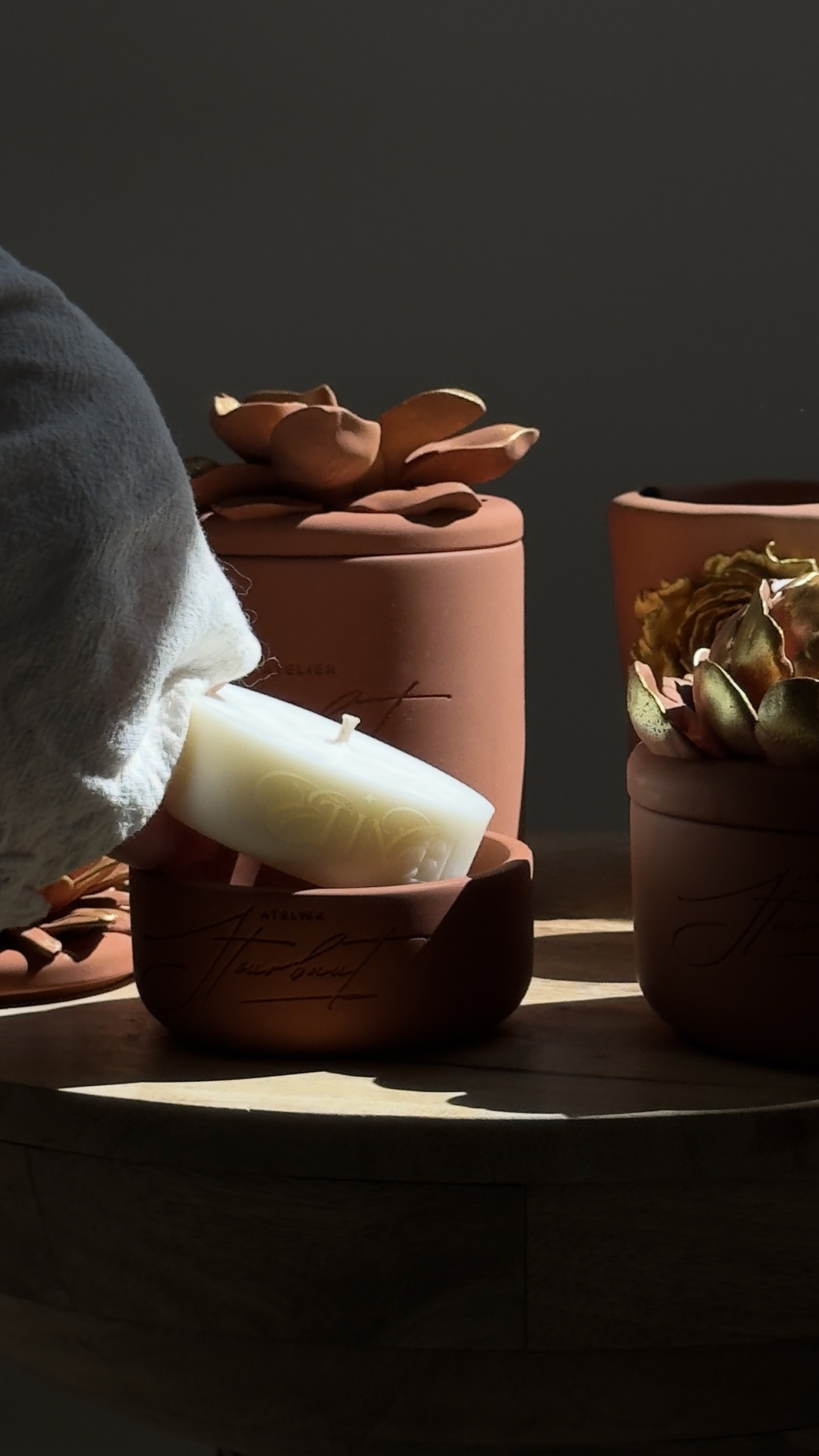 Ici, la matière est travaillée à la main pour donner naissance à des bougies décoratives et objets intemporels, pensés comme de véritables pièces de décoration.