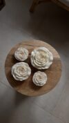 Chaque fleur est façonnée à la main, une à une, pour créer une composition délicate et poétique.