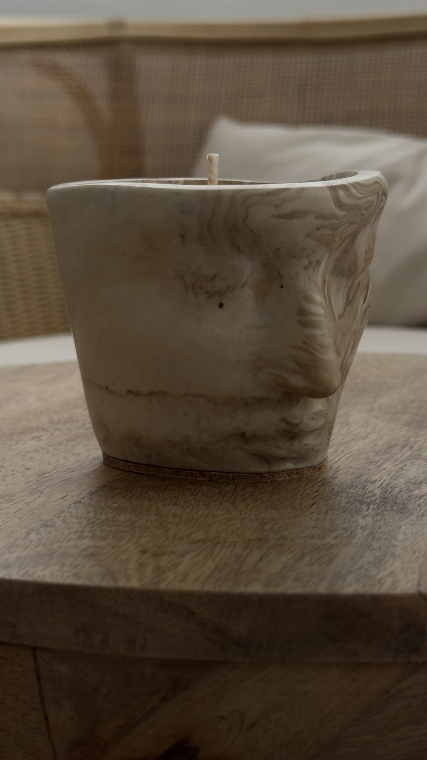 Chaque pièce étant unique, les marbrures peuvent variées d’une bougie à l’autre, étant plus au moins intensifiées ou non.